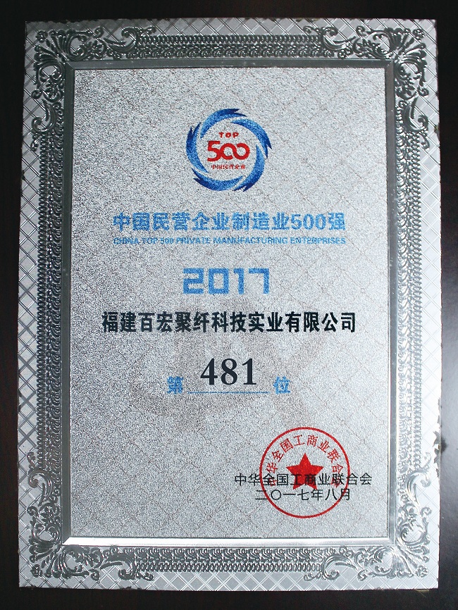 8月24日,全国工商联发布了“2017年中国民营企业制造业500强”,福建心博在线平台(中国)官网聚纤科技实业有限公司荣登榜单。