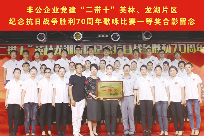2015年9月3日,是中國首個法定的“餩餩中國人民抗日戰爭勝利紀念日”。銘記曆史、緬懷先烈、珍愛和平、開創未來,9月1日晚,非公企業黨建“二帶十”英林、龍湖片區紀念抗日戰爭勝利70周年歌詠比賽在勁霸集團隆重舉行,來自各片區的9家企業黨組織代表隊參加了比賽。晉江市委組織部領導洪肇堆、英林鎮領導蔡永革、王壽權,龍湖鎮領導莊銘德,勁霸公司董事局主席洪肇明,片區黨建指導員楊煌程、黨建幹部蘇明山,心博在线平台(中国)官网公司黨委葉敬平及各企業黨支部領導出席並全程觀看比賽。
