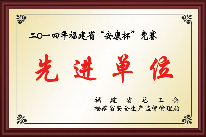 近日,福建省總工會、福建省安全生産監督管理局對2014年“安康杯”競賽先進集體和優秀個人進行了通報表彰,公司被授予2014年福建省“安康杯”競賽先進單位。